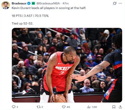 末节你就看到火箭各种的整活儿,泰特尺一级恶意犯规,小贾吃T,活塞打出11-1的攻防浪潮,杜兰特连球都没摸到就崩盘了,乌度卡叫了两个暂停杜兰特终于获得出手机会连续3投命中一个帮助火箭稳定局势。小贾1帽1断1板1传助力杜皇,KD持球干拔再中,火箭拉开到10分锁定胜局,活塞不放弃KD被吹两个三分犯规很无奈。