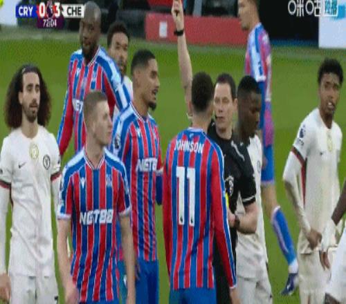 第73分钟,沃顿飞铲凯塞多,裁判将其两黄变一红罚下