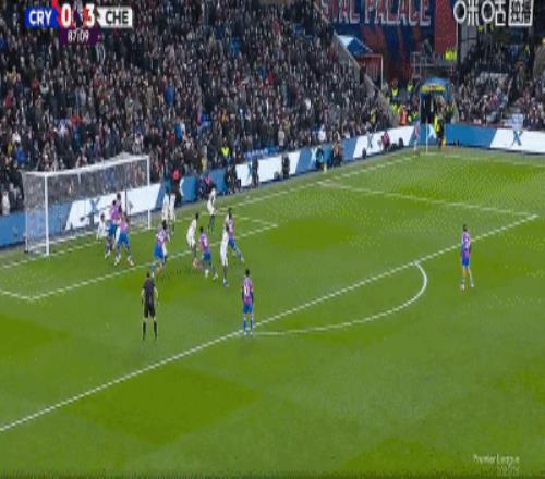 第88分钟,扳回一城,理查兹门前头球破门,水晶宫1-3切尔西